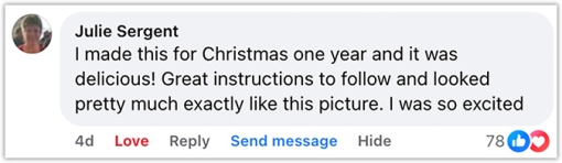 "Thank you! Thank you! THANK YOU!!! The cookbook was the best. We had the eggnog and gingerbread yesterday for Christmas Eve. My children went nuts for it. Delicious! I am writing to you from our dinner table on Christmas Day because the pork loin and stuffing was just so incredibly delicious that we had to tell you and thank you straight away! Our entire family is so grateful. It will become our standard Christmas dinner every year.