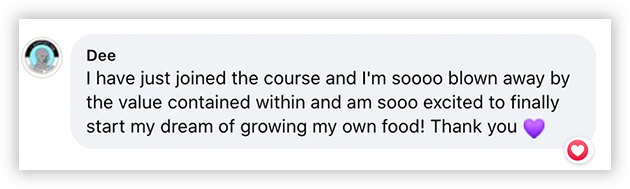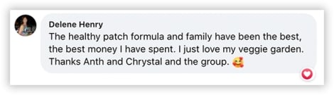 "If you want to start growing your own beautiful nourishing foods with ease to support your health… join The Healthy Patch Formula! It can seriously change your life, it will feed your soul, you won’t regret it!"